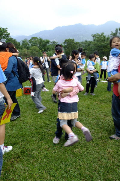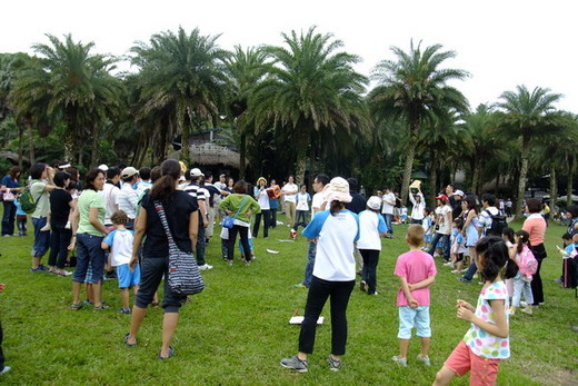 約下午二點老師們便在餐廳前的大草坪上帶著大家帶動唱與做一些親子遊戲,度過這愉快充實的下午。