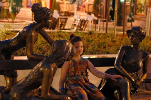 這城鎮裡 有幾張椅子就像圖一 會配上一些人物雕像