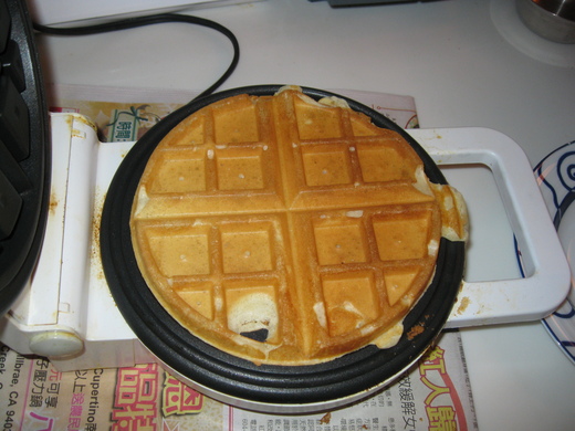 以往我們想吃格子餅時會特別開車去一家歷史悠久的煎餅屋(The Original Pancake House, http://www.originalpancakehouse.com/),每次去吃,晚餐都可以省了,因為不但份量多,熱量也高.經過這次的嚐試,我們可能很久都不會去拜訪那家煎餅屋哦!因為自己做的就很讚!
