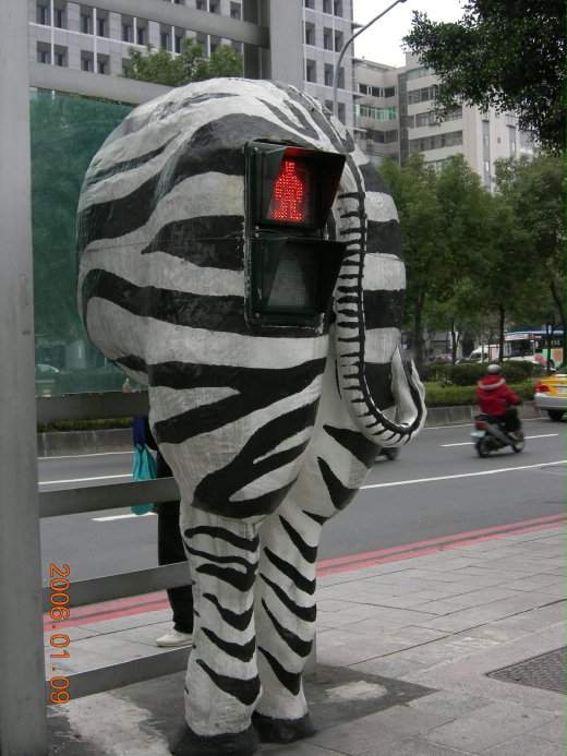 一為街頭雕塑,為紅綠燈捍衛戰士