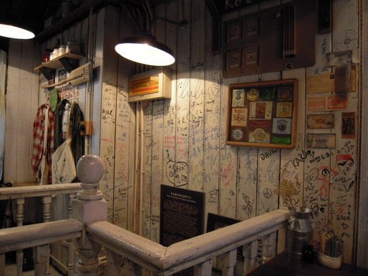 上了樓梯到二樓,牆上一排書架,牆上滿滿的簽名,真想隨手留下個甚麼字號,卻找不到簽字筆