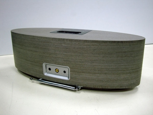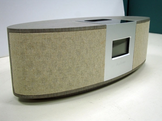 其中比較特別的是Auluxe推出的木製手工藝 iPhone音響,這款音響以異材質取勝,以木頭材質融合科技木皮、金屬與麻織網布等特殊元素,在設計上以典雅的橢圓造型,強調黃金比例曲線美背,360度視覺美感,這樣的作法挑戰度很高,很難量產,光是製作過程就需要197道工序