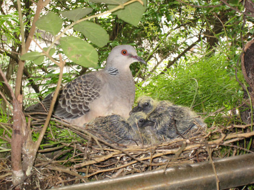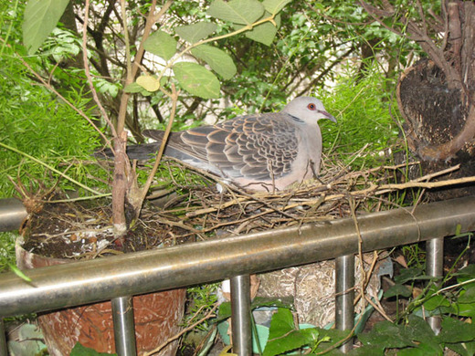 我沒有「大砲」的裝備,因為牠們就利用我置於陽台的花盆私蓋違建,築起愛巢來,因此我只用傻瓜相機,就輕易拍到如此清晰的照片,真要謝謝這對天外飛來的寶貝,牠們不但讓我完整的記錄到神奇的生命歷程,還讓我有感而發所寫的文章「陽台的嬌客」獲得懷恩文學獎。
