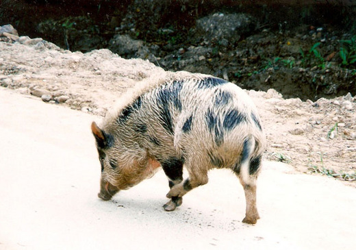 說豬笨,我也不以為然。我居家附近有一條相當幽靜的步道,沿著北峰溪通往上游的翠湖,有一陣子我幾乎每天清晨會去那條步道健行一下。常常跟我打照面的,竟是一條像獨行俠般的豬美眉,牠無視週遭的人,在那條山道上獨來獨往。我曾好奇的問在步道旁邊種菜的阿桑,可知道這隻豬的來歷?他告知是市區某戶人家的豬,放牠出來散步的。