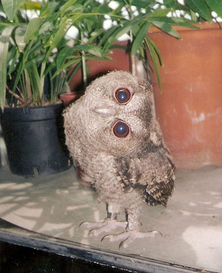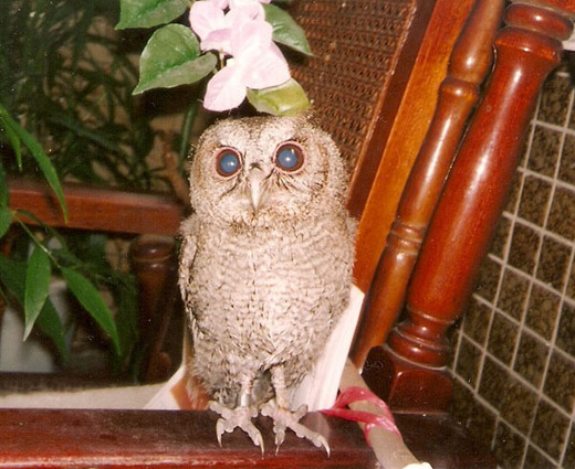 我小學時跟貓頭鷹有個奇妙的邂逅...... 因為當值日生提早到校,去導辦開門時發現一隻貓頭鷹睡覺(賴床忘了飛走?),男同學用塑膠垃圾桶(有花紋縫隙的)倒蓋活捉了牠...真正的貓頭鷹比童話書裡想像得還要小得多....後來老師拿來當活教材展覽給大家看之後就野放了牠.... 那是我第一次親眼看到貓頭鷹,覺得頭大大很可愛,但納悶為何牠是"智慧"的象徵,睡到被活擒呢.....哈哈....