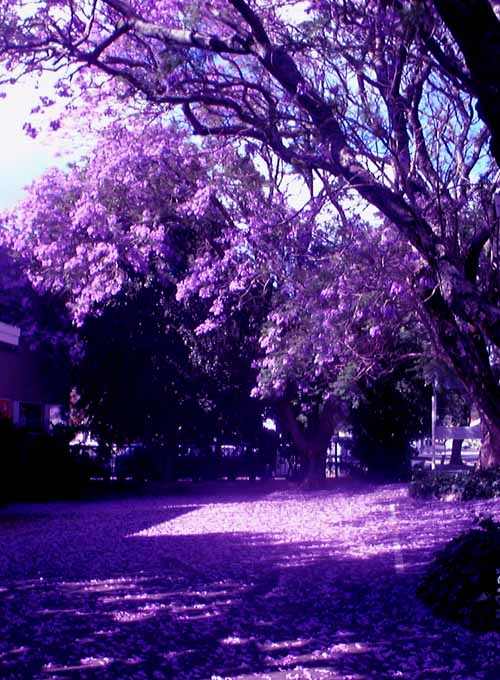 撇開穿著不說,紫色的花草我倒是蠻喜愛的,像鳶尾、桔梗,以及又名不凋花的斯太菊等,都美得令人對紫色產生迷惑,就我僅有的見識,它們足堪為紫色花卉中之「國色」了。直到去年十一月去了一趟南非,才又覺得這些花美則美矣,但若與一種名為加克蘭大(JACARANDA)的樹花一比較,她們的姿色就又成了黛玉之姿,顯得單薄了。