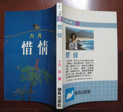 書是這樣好的東西,好到有一天自己竟然也很想能擁有本自己寫的書。我能嗎?何妨試試看呢?於是兩年多前我開始不自量力的一篇篇寫了起來。其間固然備嚐退稿的辛酸,但也兼嚐「一再出局」後終於「得分」的欣喜。就是帶著這種「大無畏」的傻勁寫啊寫的,終於也寫到夠出本把書的量了。我把它們整理出來,寄到省政府新聞處參加「優良文藝作品」獎助出版甄選,雖然還是不自量力,但我相信這是指望別人替像我這樣一個「新人」出書的唯一門路了。而傻人果然有傻福,我的處女作《惜情》在競爭激烈中入選了(共有近百本角逐,甄選六本)。