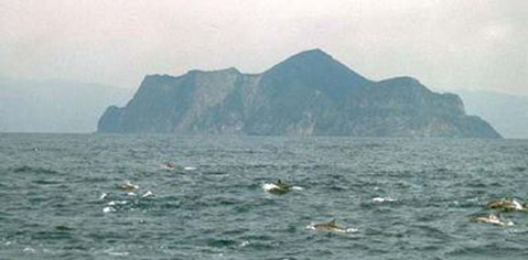 因為要先去觀賞鯨豚,我們的渡輪只輕輕掠過龜山島即開往外海。宜蘭外海是親潮與黑潮交會之處,也是台灣三大漁場之一,由於漁場豐富,自然成為海上鯨豚棲息之所,這裡最常見鯨豚有花紋海豚、飛旋海豚、熱帶班海豚、弗氏海豚四種。每年4月至10月是賞鯨的好季節,不過賞鯨豚也是要憑點運氣,據說不是每次出海都能看到,不過以今天這種溫煦的天候,船東十分有把握的說,一定可以讓我們如願觀賞到海豚。聽到船東這麼說,我們都有些興奮起來,每個人都拉長了脖子,屏息注意海面的動靜,大家都希望自己成為第一個發現海豚蹤影的幸運者。