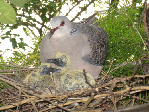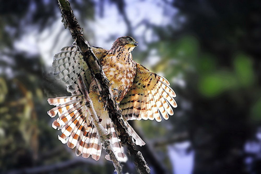 【照片說明】(上)金背鳩在陽台築巢育雛。(下)綠繡眼,莊勝雄攝影。(下下)鳳頭蒼鷹,莊勝雄攝影。