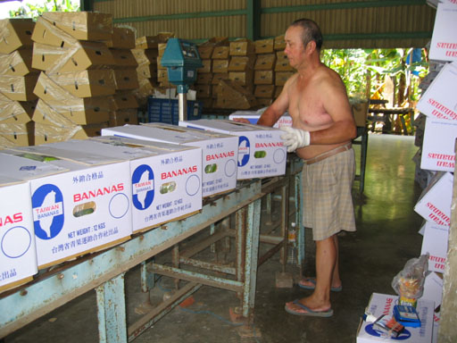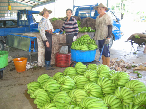【下二張照片】香蕉收成後,送到各鄉鎮的收集站,準備裝箱運銷作業。