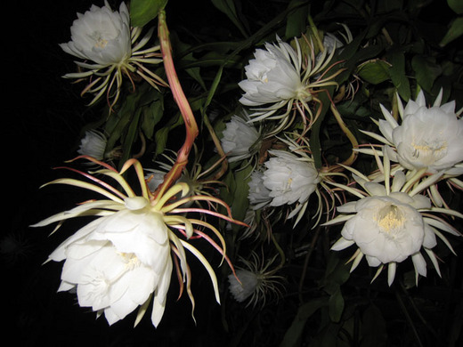 曇花,又稱「月下美人」,因為只在晚上開花,入夜七、八點鐘的時候開始綻放,午夜時盛開,然後就慢慢凋萎了,因此有「曇花一現」的說法。