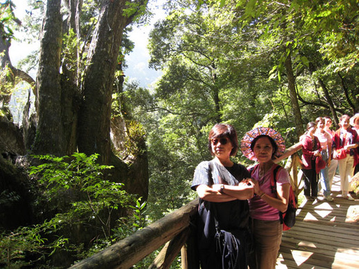 翌日晨起,天氣清朗,是健行「走山」的最好時光。用過早餐後便開拔進入拉拉山的風景自然保護區內,沿著舖設得很好的木棧道行走,我們看到一片原始天然林,二十六株千年紅檜直指雲天,像巨人般左一株右一株漸入眼簾。站在巨木下,我們這些自稱「萬物之靈」的人類,簡直太渺小了,人啊!還是要懂得謙虛才好。