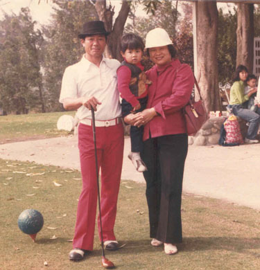 【照片說明】(上)二嫂年輕時的倩影。(下)二哥的結婚照。(下下)我家達兒曾由二嫂幫忙帶了一兩年,直到上幼稚園才結束「流浪」歲月。二哥喜愛打高爾夫,二嫂帶達兒去觀戰時,巧遇高爾夫名將呂良煥合影留念。