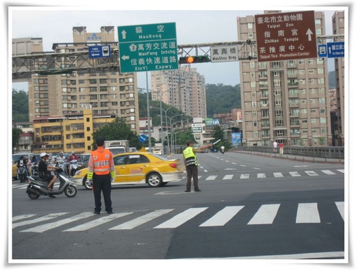近年台北正在趕捷運系統及鐵路地下化等大工程,原本就一團糟的市區交通更是雪上加霜,真是到了交通的黑暗期。在頗受塞車之苦的日子裡,唯一能叫我心平氣和下來的,就是在許多交通要衝的十字路口上,看到為數不少放下生意不做,協助編制不足的交通警察指揮車流的義交(交通義警)了。他們大多是計程車司機,他們在上下班尖峰時段載客率最高的時刻,把個人利益擺一邊(他們也有津貼,但只是象徵性的),忍受飢餓,忍受日晒雨淋,忍受汽機車排出的大量廢氣,站在充滿危機的十字路口,排解稍一不慎就會打結的車陣。啊!他們真偉大,他們是台北街頭最令人感動的一尊尊街頭菩薩,也是最令人動容的台北「街景」。看到他們犧牲個人權益來為眾多駕駛朋友服務,我們這些開車族實在不該只會抱怨這個,抱怨那個。我們要守法,要懂得尊重別人,否則如果這些義交也跟大家一樣,只會破口大罵台北的交通,台北街頭豈不更要亂上加亂?