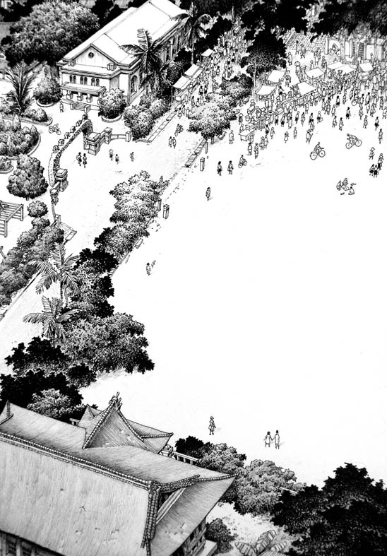 一九五○年之前,我讀的幼稚園設在畫面左上角的老禮堂裡面靠大門的角落。