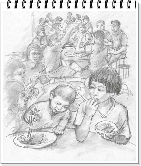 如今想想,鄉下孩子會如此不守規矩,不全然是「欠教養」的關係,實在是那年頭大家的生活太艱苦了。有些人家甚至有一餐沒一餐的,難得有機會飽吃一頓,誰不把握良機「大撈」一頓。像現在豐衣足食的年代,誰家不是經年大魚大肉的,到如今,怕也沒有誰家敢送人「菜尾」了,搞不好送去時還遭人白眼以對呢。
