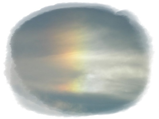 南臺灣的天空,尤其是由青山綠野撐起來的那一片天總是特別湛藍,那是我揮別已有二十年的故鄉──旗山。而就在我即將遠離負笈他鄉的一個夏日午後(約四、五點,離日落尚有一段時間),驀然發現東邊湛藍如洗還飄著幾許白雲的晴空中,竟悠悠然飄著一朵彩雲──真正五顏六色交融的彩色雲朵,而不是被霞光染紅的那種彩霞。