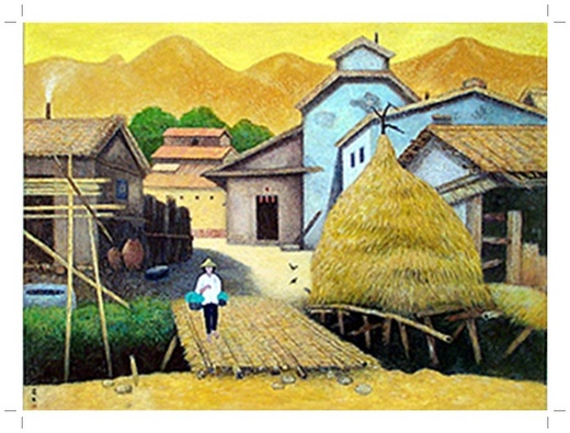 想來呂大師這幅畫作取材自美濃客家村吧。