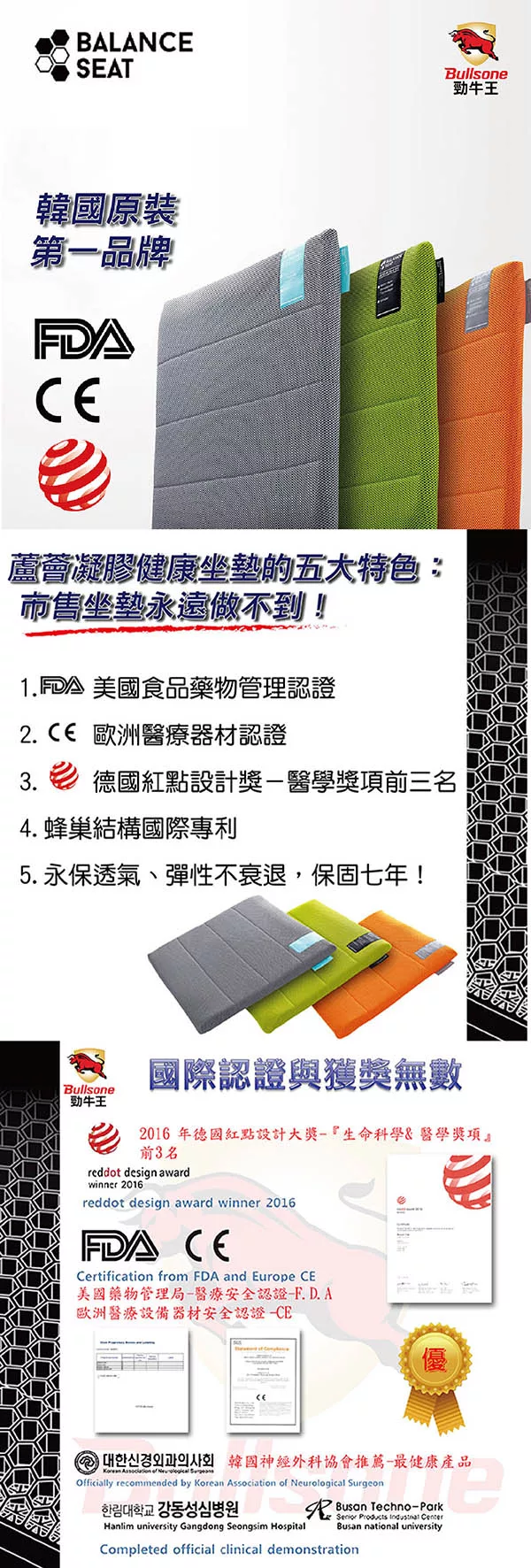 【Bullsone-勁牛王】蘆薈凝膠健康坐墊(三色可