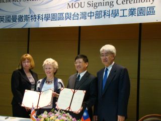 楊局長進一步說:我們很高興,一九八四年以公司型態設立的英國曼徹斯特科學園區,主要的產業包括電腦及通訊、生技與醫療、數位多媒體等,是西方傳統研發型的科學園區,區內不得從事任何生產。這與台灣中科推動的中興新村高等研究園區,正好性質相同,因此經過與英國方面兩年來的討論,終於在南韓大田舉行的「世界科學園區協會」第二十七屆年會簽署了「合作備忘錄」。