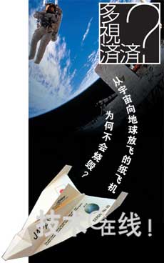 正確答案為(3)。證實這一答案的日子一天天走近我們。日本摺紙飛機協會、東京大學及日本宇宙航空研究開發機構(JAXA)等目前正在共同推進“摺紙飛機從太空返回地球的項目”。目的在於製作出從太空快速放飛時可返回地球而不會燒燬的“超級紙飛機”。這種超級紙飛機已製作完成。目前正在與有關機構協商,將這種紙飛機帶上穿梭機上,由日本太空人放飛。