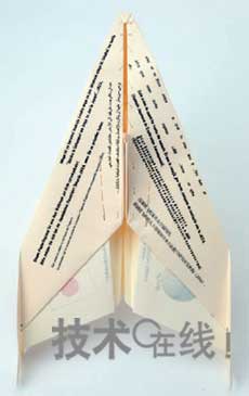 再請讀者回答第二個問題。為了使超級紙飛機返回地球時不會被燒燬,在設計上有兩個要點,這兩個要點是什麼?這一問題的提示可在右圖中找到。圖中的紙飛機與將從宇宙放飛的紙飛機相同。它是用一張A2尺寸的紙折疊而成,長