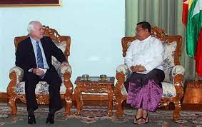 (按:當年是一月初抵緬甸,穿著球鞋,覺炙熱難忍,遂入境隨俗,換穿夾腳拖。後來,搭機前往曼谷。在機上才驚覺:我竟然穿夾腳拖上飛機,甚為赧然。隨後在機上閱讀報紙,見一則新聞,當即釋然。原來彼時美國議員John McCain正在訪問緬甸。報上登載像片一幀,乃他與緬甸副總統會談。副總統也是穿夾腳拖啊。)