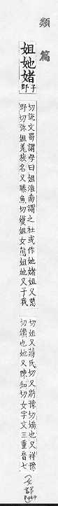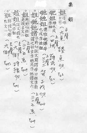 一為毑.在【集韻】裡,姐毑她媎四字並列,在【類篇】裡,姐她媎三字