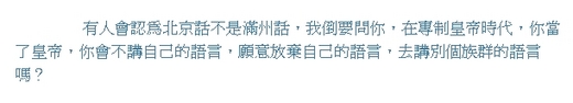 【國語騎射-滿人宗室不會講滿語】,【滿州話即將消逝】,【北京話不是滿州話】,【國語不是北京話】