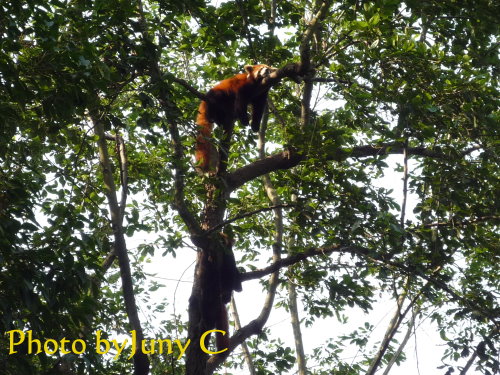 而在牠們的休憩區,一隻隻浣熊就懶洋洋的掛在樹上睡覺。