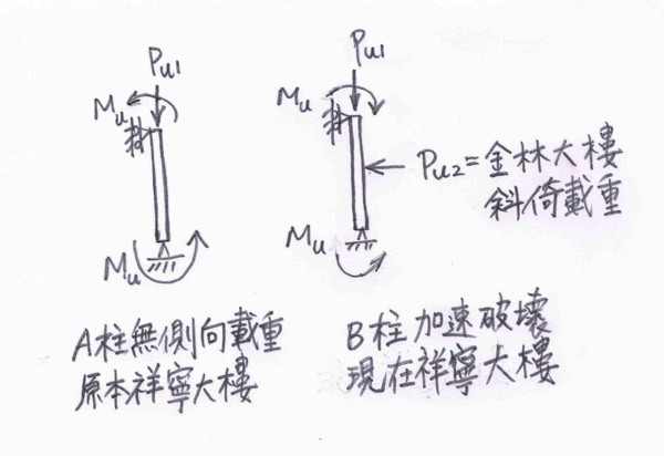 台北祥寧商業大樓柱變成樑-柱示意圖