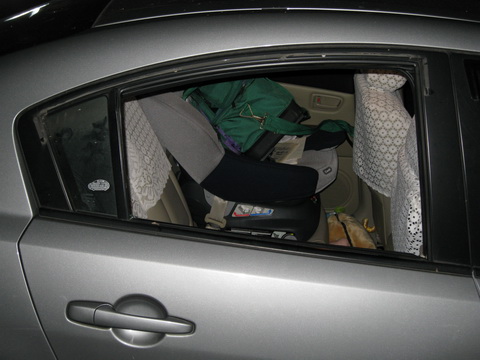 當時心想會不會是哪個詐騙集團又打電話來詐騙,可是後來想想他能準確的告訴我地點和車型以及有我的手機電話,應該是警察沒錯,就這樣我和老媽兩個人就到國小停車的地點察看,一直以來覺得停車安全又便利的國小,沒想到被砸破車窗偷東西的車子還不少,我不是唯一的一個受害者。