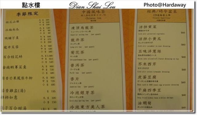 點水樓部分前菜菜單