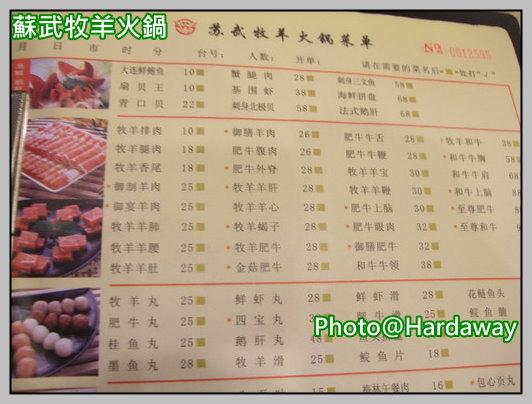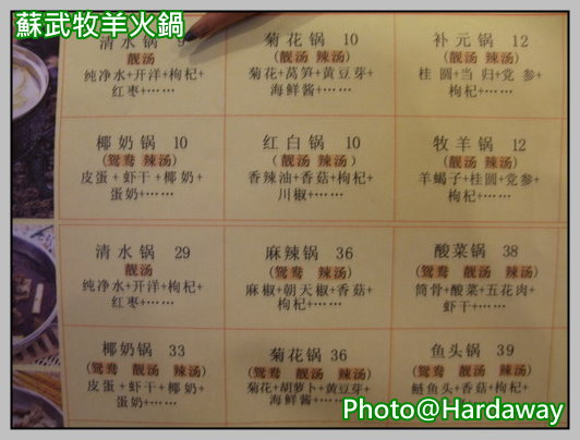 蘇武牧羊火鍋 MENU