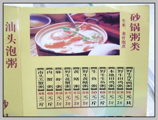 另一個招牌的野生花蟹粥,時價38.7元人民幣/半斤。