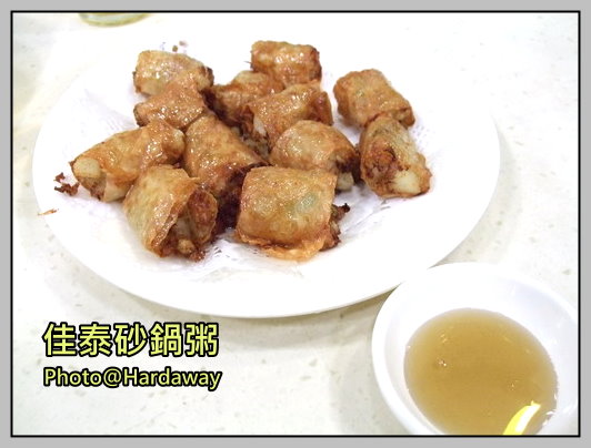 這個炸物有有點像雞捲的口感,搭粥還蠻好吃的呢。