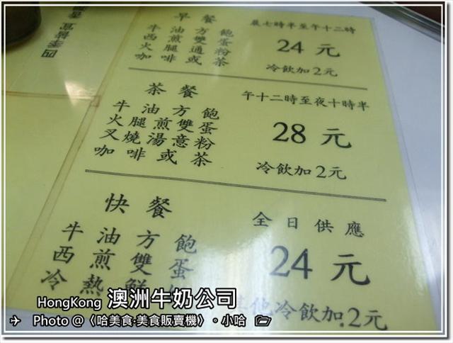 分別是早餐(7~1200)點港幣24塊,
