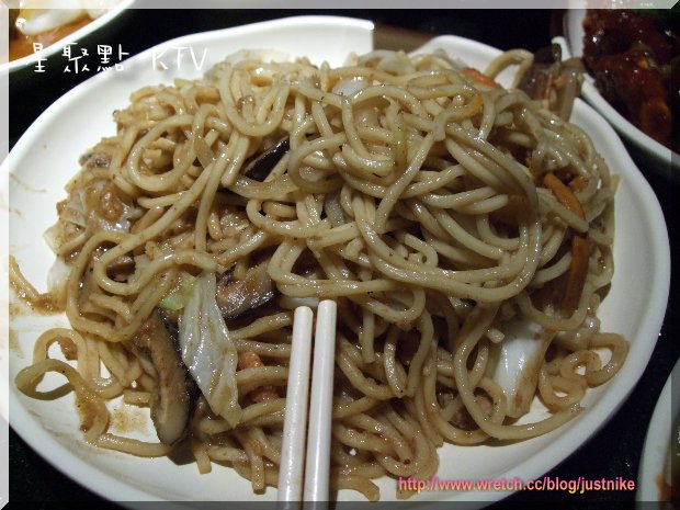 一群人就先殺去拿了料理,首先看到熱炒料理的肉絲炒麵...
