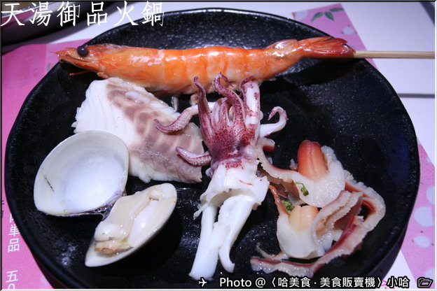 小哈在吃完肉片之後,把這個加購的海鮮通通煮好一份來享用一番!