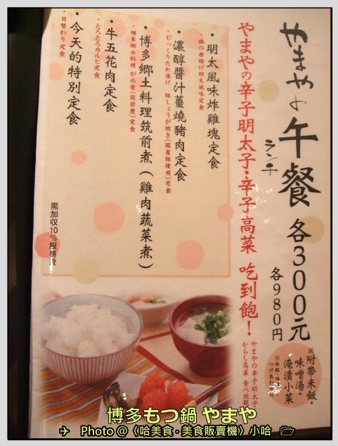也就是"博多もつ鍋 やまや",博多YAMAYA除了鍋物外,還有名物明太子..