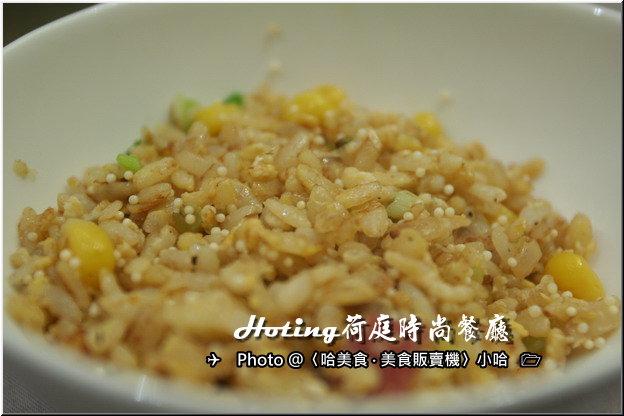 鐵板燒炒飯 飛魚卵炒飯,內有培根、玉米、飛魚卵..等配料,