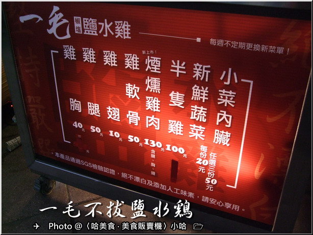 來看看這次在「一毛不拔鹽水雞」,小哈點選了啥米好料..