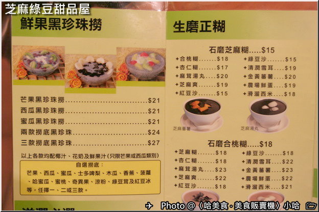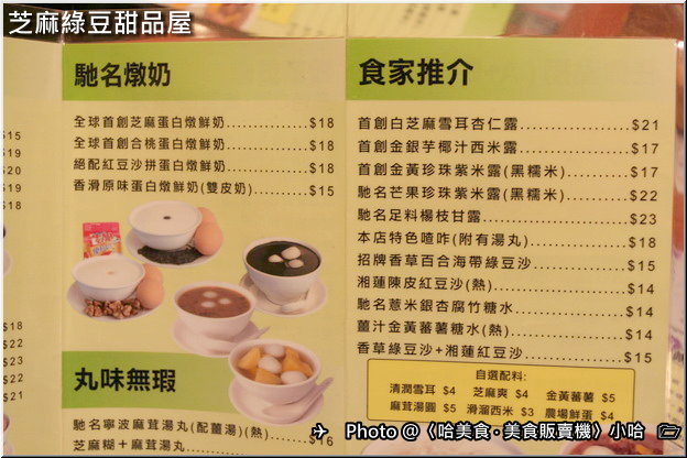 這個芝麻綠豆甜品屋,餐牌上的餐點東西可真不少,