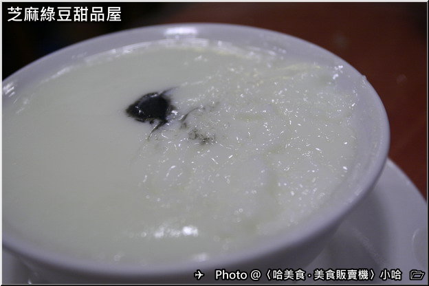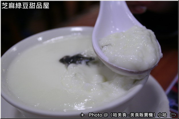 外圍白色部分的是燉奶,中間那一黑點就是芝麻糊,往下挖就會有芝麻糊,