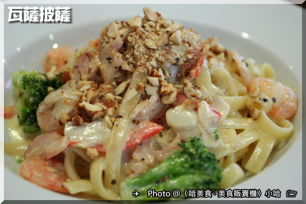 有著鮮蝦與燻雞肉的奶油總匯寬扁麵,口味調的蠻好的,