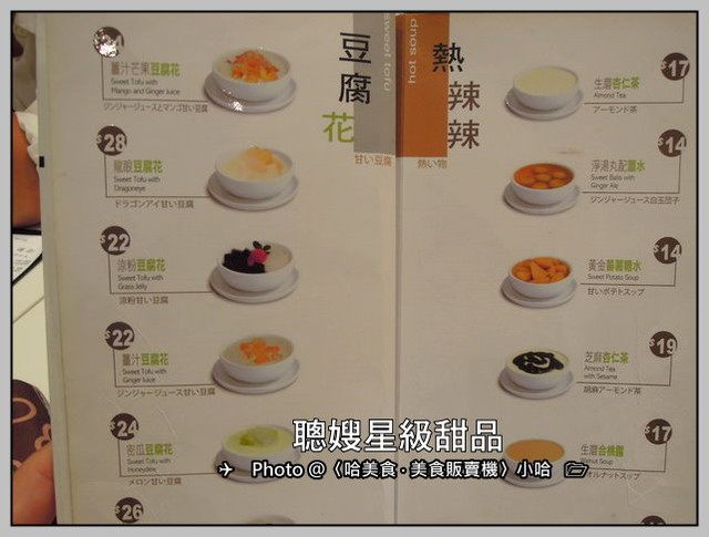 甜點專賣店菜單選擇很多,先看到冷、熱豆腐花的MENU。