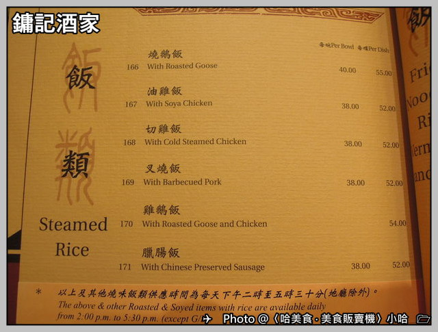 以招牌燒鵝來說的,每碗HKD:40元與每盤HKD:55元。