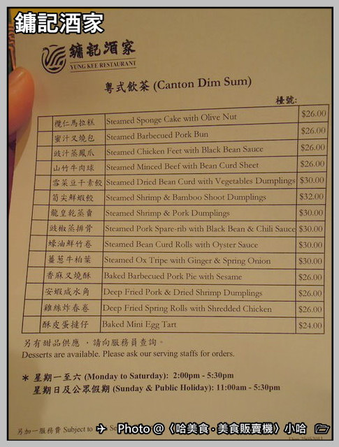 另外鏞記午茶時間還有賣港點,粵式飲茶,價格HKD:24~32元不等,
