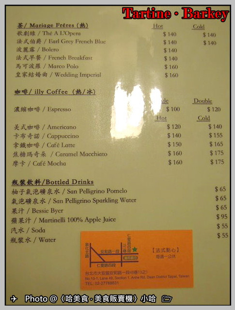 另外一面的MENU,則是Mariage茶、illy咖啡與玻璃瓶裝飲料。