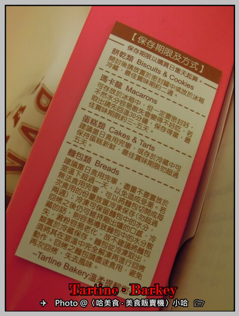小哈發現貼心的【TARTINE BAKERY】,還有小貼紙外帶的叮嚀呢^^
